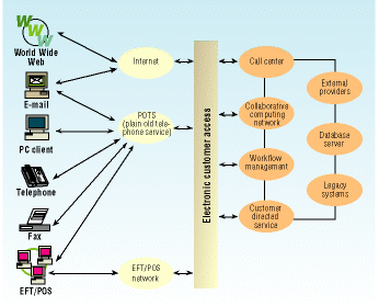 This model of a solution for communicating with customers employs an integrated CTI architecture.